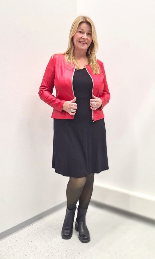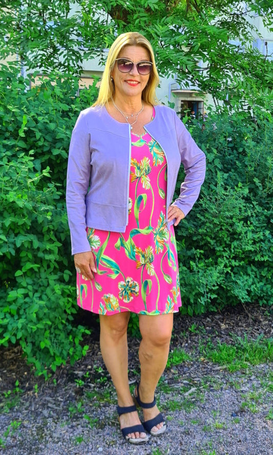Tekstiilinahkainen lantion alle ulottuva jakku AIJA vetoketjulla Fuksia