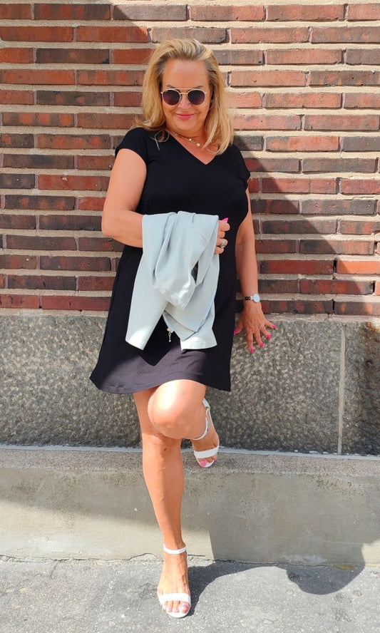 Tekstiilinahkainen Kotelomekko MARITA pikkuhihalla Musta