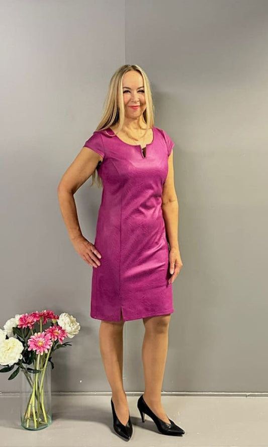 Tekstiilinahkainen Kotelomekko MARITA pikkuhihalla Fuksia