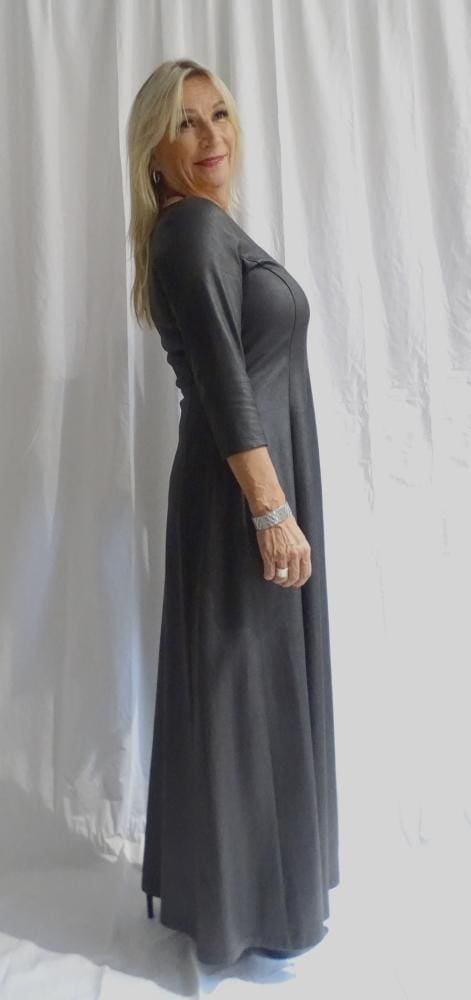 Tekstiilinahkainen leninki SONJA TÄYSPITKÄ venekauluksella Musta